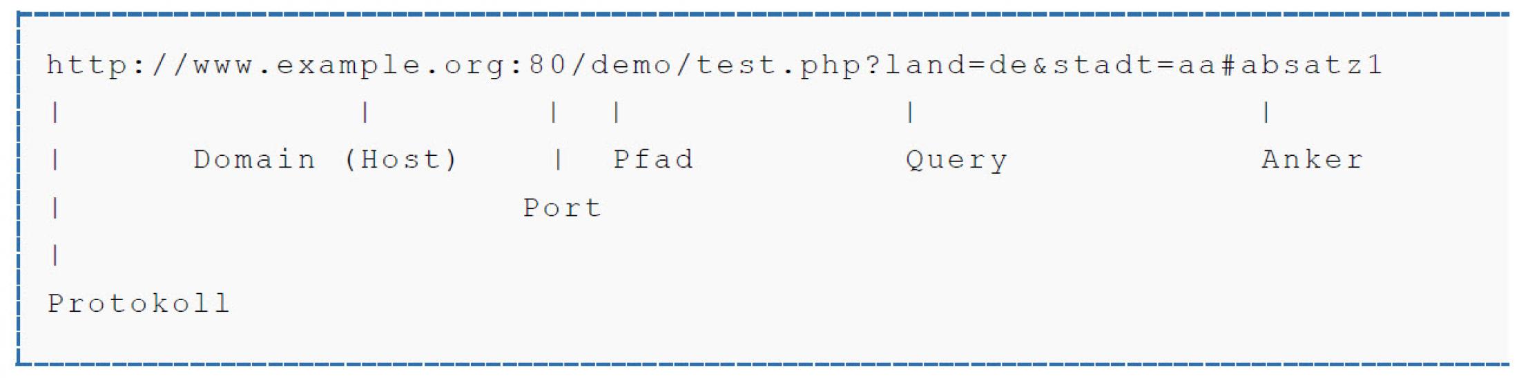 Protokolle (https://): Das Netzwerkprotokoll steuert die Kommunikation zwischen den Rechnern. Im Web existieren https:// (Browser) oder ftp:// (File-Transfer).